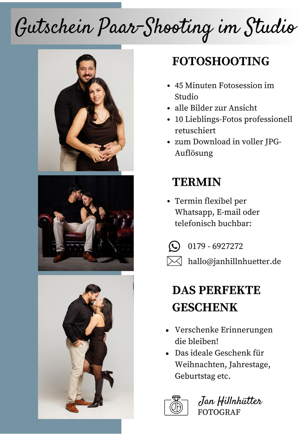 Gutschein für ein exklusives Paar-Shooting im Studio mit Fotograf Jan Hillnhütter